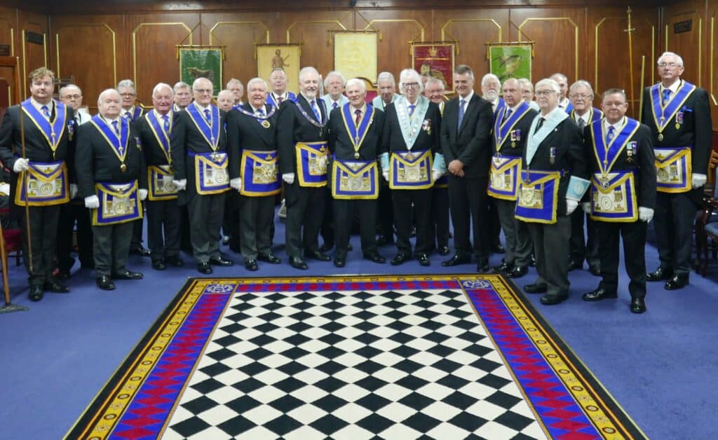 The Deputy Provincial Grand Master, VWBro John Griffin, was accompanied by the Assistant Provincial Grand Master, WBro Wes Marchant; the Provincial Grand Senior Warden, WBro Steve Boyle; the Provincial Grand Junior Warden, WBro Kevin Reaney; and the Southern Area Chairman, WBro Nigel Johnson, as they were admitted into the lodge. The WM offered the gavel to the DepPGM, who accepted it and took the chair, with his Wardens installed in their respective positions.
