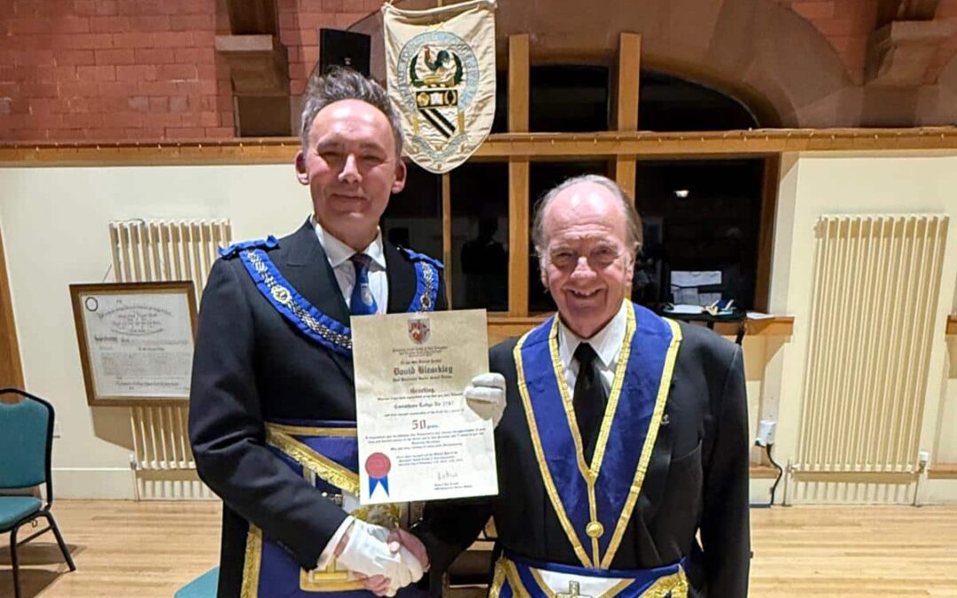 As the evening concluded, David was presented with his illuminated 50-year certificate, together with a letter from the Right Worshipful Provincial Grand Master, marking this significant and well-earned milestone.