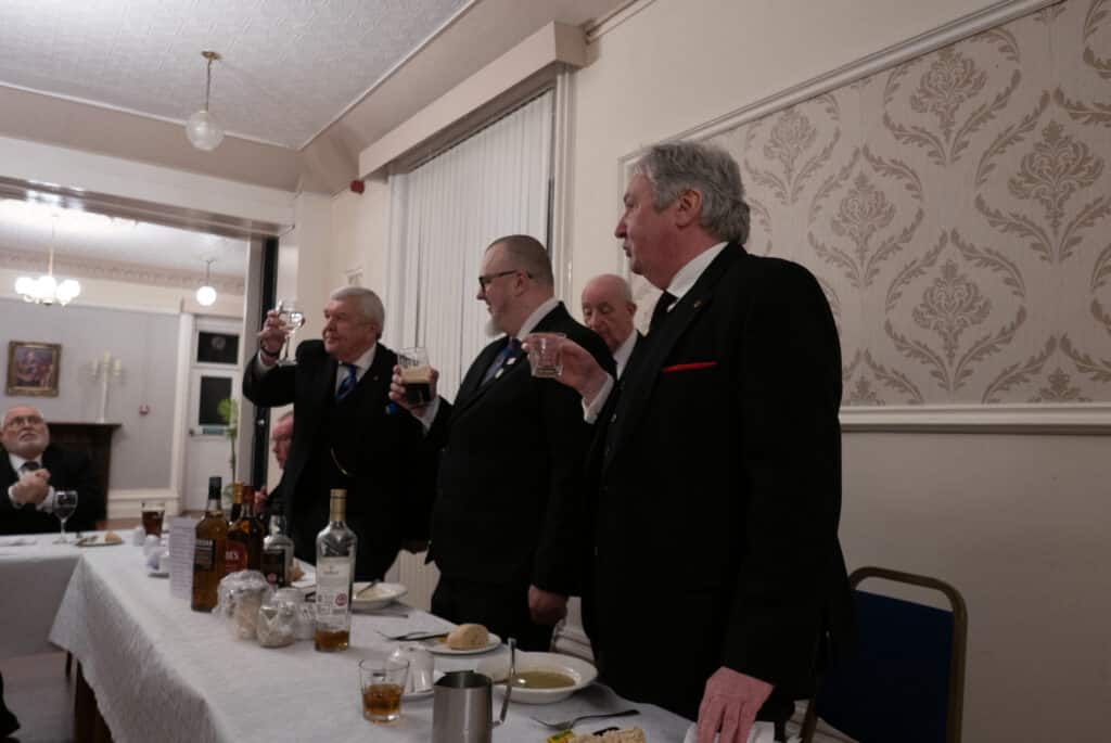 The ensuing festive board was enhanced by WBro Barry Rhodes singing a rendition of the Master’s song.