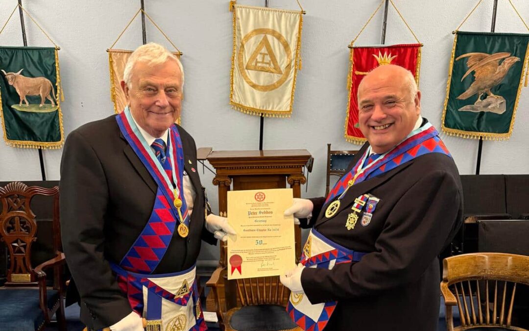 This Golden Jubilee celebration was a fitting recognition of EComp Peter Seddon’s fifty years of dedication, service, and enthusiasm for the Holy Royal Arch, and a testament to a life of commitment to both Freemasonry and the wider community.