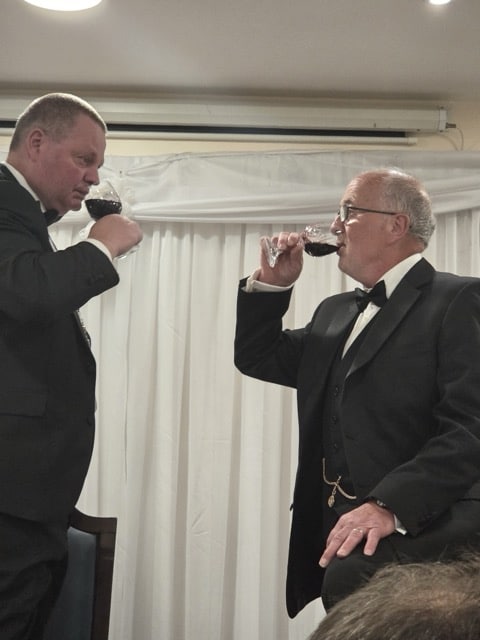 The brethren and visitors accompanied by WBro Paul Aspinall the representative of the Right Worshipful Provincial Grand Master then retired to the Festive Board which was an enjoyable evening with the traditional Masters Song being performed by WBro Gibson and assisted by WBro Jones on the organ.