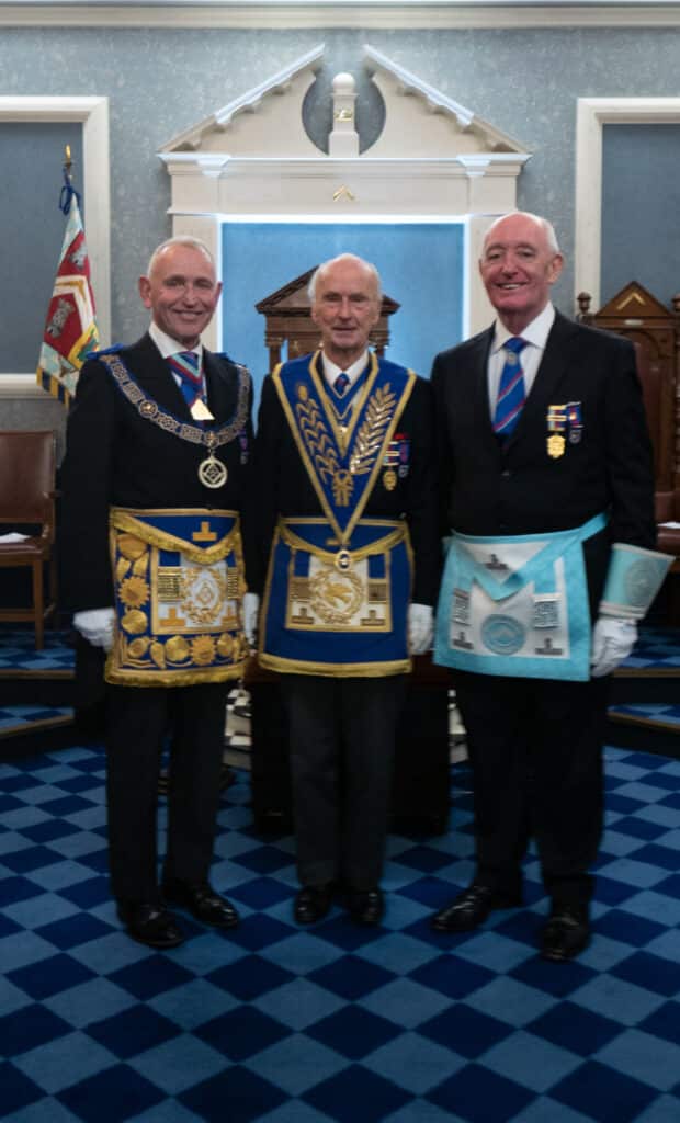 The personal recollections covered Bill’s introduction to Freemasonry, which came through a close friend who was a former Lancaster bomber pilot. He went on to mention how fifty years in Masonry had been life-defining, had taught him the enduring value of Brotherly Love, Relief and Truth, and how he gave thanks for the deep friendships and fellowship he had received. He pointed out that the most important person in his life had been his wife, Jead, who had been the “unshakable foundation of his entire life”.